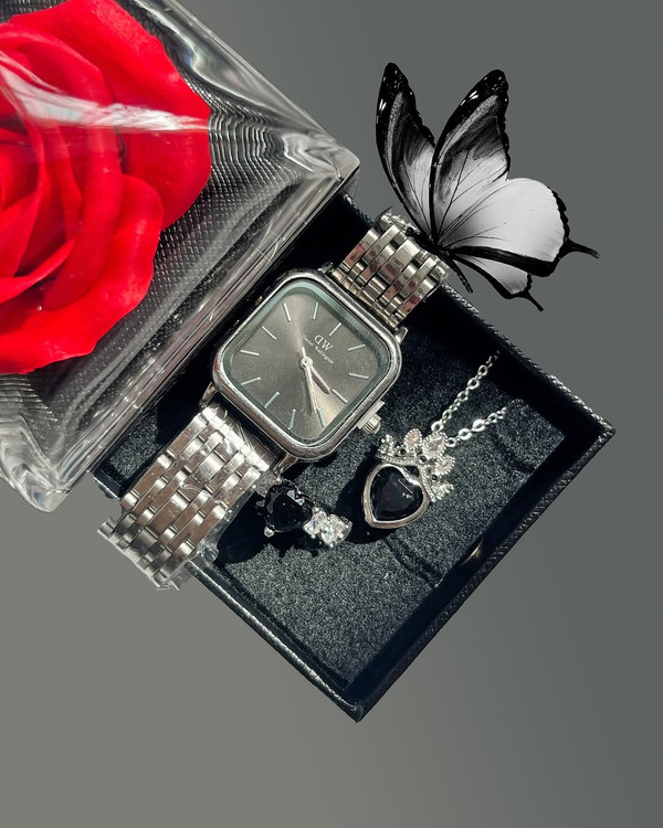ست بلک فقط ورق بزنید ببینید چقد نازن @shiny.gallerya @shiny.gallerya تمامی کار ها استیل بها گردنبند ۲۵۸ بها انگشتر ۲۶۸ بها ساعت ۳۹۸