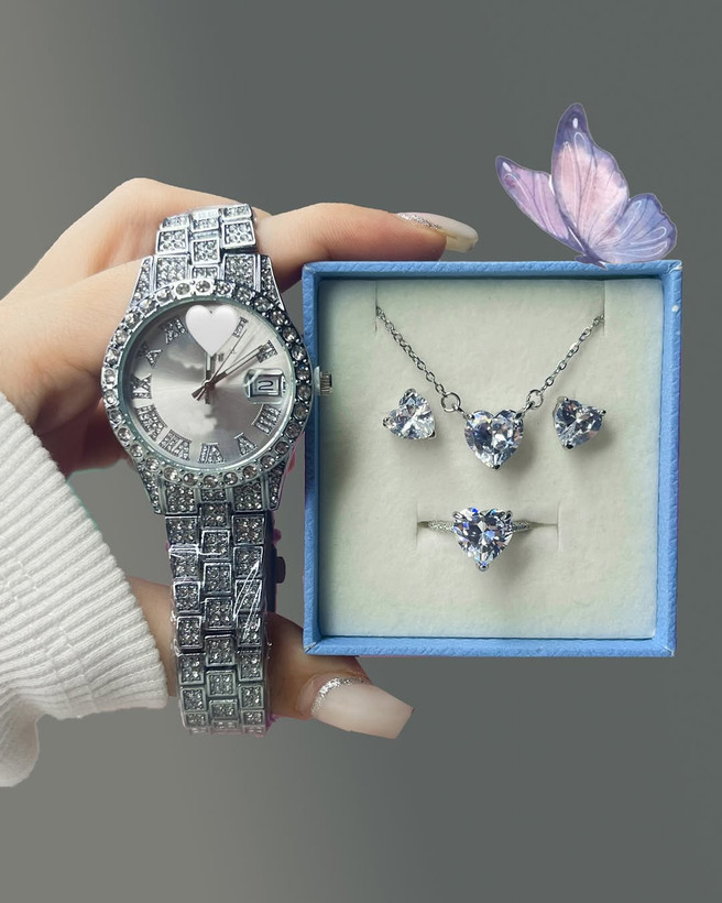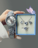 هم شیکه هم خوشگله اگه خودوم یدونه حق انتخاب داشتم فقط انتخابم این ست بود @shiny.gallerya @shineccessorya کیفیتش فوق العادست نیمست استیل ۴۲۸ انگشتر ۲۴۸ ساعت فول نگین ۸۰۰ باکس عطر دارشم موجوده ۴۹۸