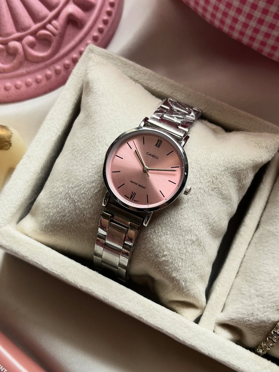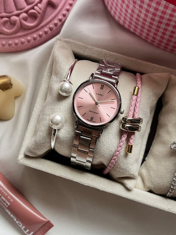 ست ساعت و دستبند کاسیو صورتی روکش نقره