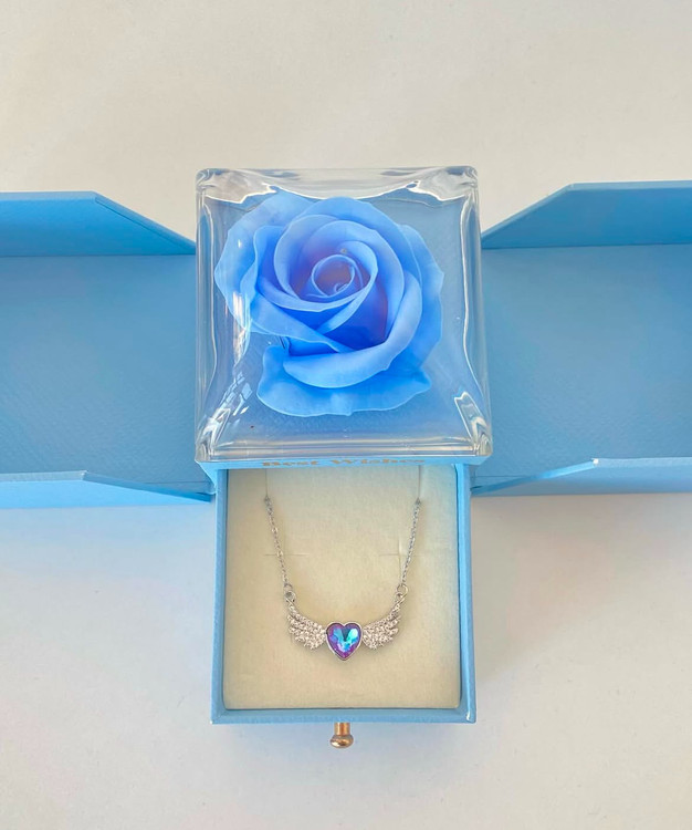 پک هدیه شامل یک عدد گردنبند آنجل بنفش به همراه باکس روکش داره آبی هست💙